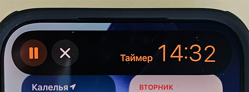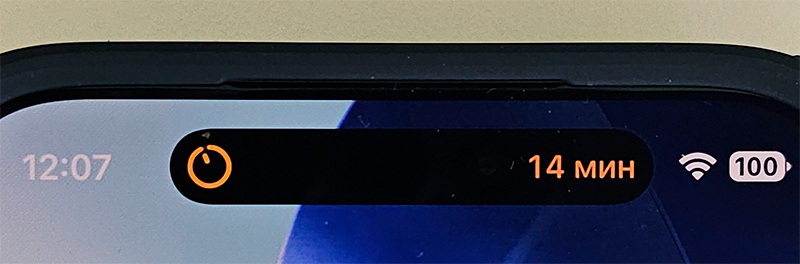 Режим Dynamic Island (динамический остров) работает как и раньше. Если в фоне работает какое-то активное приложение - аудиоплеер, таймер и так далее, - то этот островок расширяется и на нем появляется соответствующая информация.