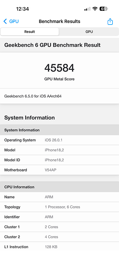 GPU: Apple GPU (6-core graphics)