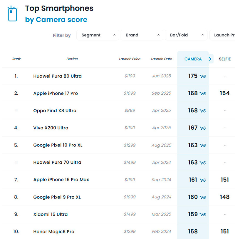 DXOMark поставил камеру этой модели на седьмое место из десяти, при этом iPhone 17 Pro - на втором месте, а там точно такой же набор камер.
