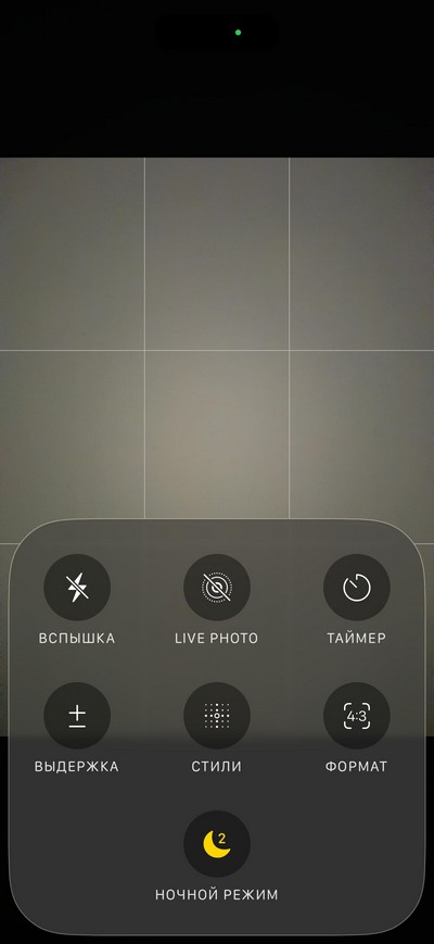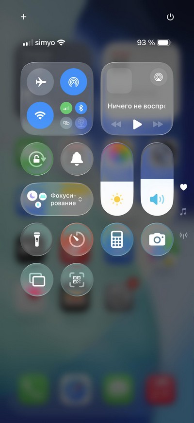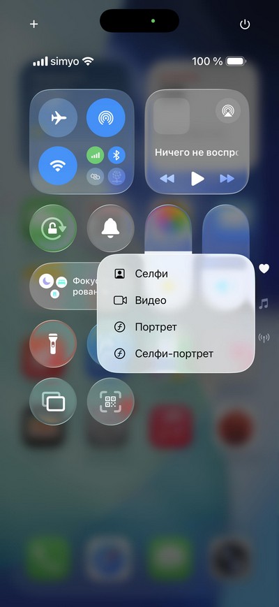 Центр управления: быстрые переключатели и некоторые приложения. При длинном нажатии на некоторые пиктограммы появляются дополнительные меню - вот, например, меню камеры.