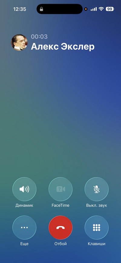 Входящий звонок и режим разговора.