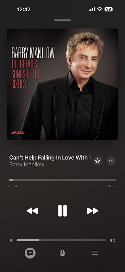 Если режим AOD включен, то при выключении экрана айфон ненадолго показывает яркий экран блокировки, а через несколько секунд уходит вот в такой режим, при котором на экран выводятся всякие уведомления о пришедших сообщениях, проигрываемой музыке, пропущенных звонках и так далее. При этом частота обновления понижается до 1 Гц.