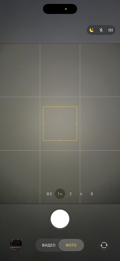 Интерфейс камеры. Вверху - режим работы вспышки, меню, открывающий дополнительные настройки. Внизу идут пиктограммы переключения между тремя камерами: основной, сверхшириком, двухкратным приближением, четырехкратным оптическим зумом, восьмикратном гибридным зумом. При этом, как обычно, можно плавно менять режимы, сводя и разводя пальцы по экрану (масштабируя). Максимальный размер цифрового зума для фото - 40х, для видео - 24x.