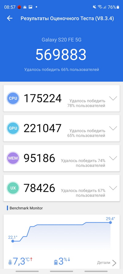 Однако подчеркиваю, что это версия на Snapdragon 865, версия на Exynos 990 показывает несколько меньшую автономность (тот же PCMark в батарейном тесте показывает где-то 11 часов 15 минут).