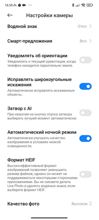 Стандартный интерфейс камер Xiaomi. Сверху - пиктограммы настроек и меню, снизу - переключение режимов.