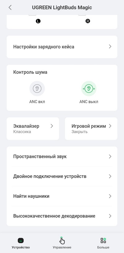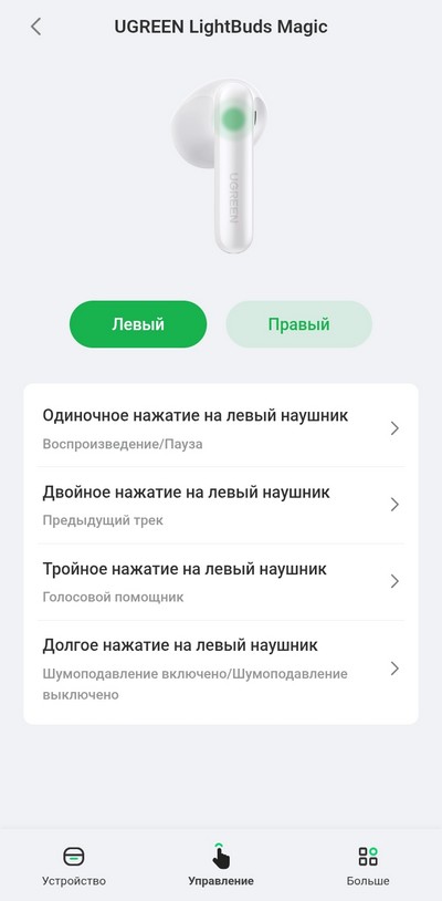 Наушники можно настраивать через прилжение UGREEN Connect App, которое доступно в Google Play и App Store.