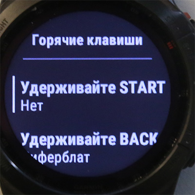 Длинное нажатие средней левой кнопки - смена и настройки циферблата, функции часов, архив тренировок, настройки.