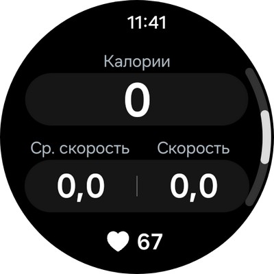 От циферблата свайп вверх - установленные приложения, коих довольно много. Также вы можете загружать любые приложения для часов из Google Play. У некоторых приложений могут быть различные скины - например, у секундомера. Также какие-то приложения могут выводить несколько экранов с информацией.