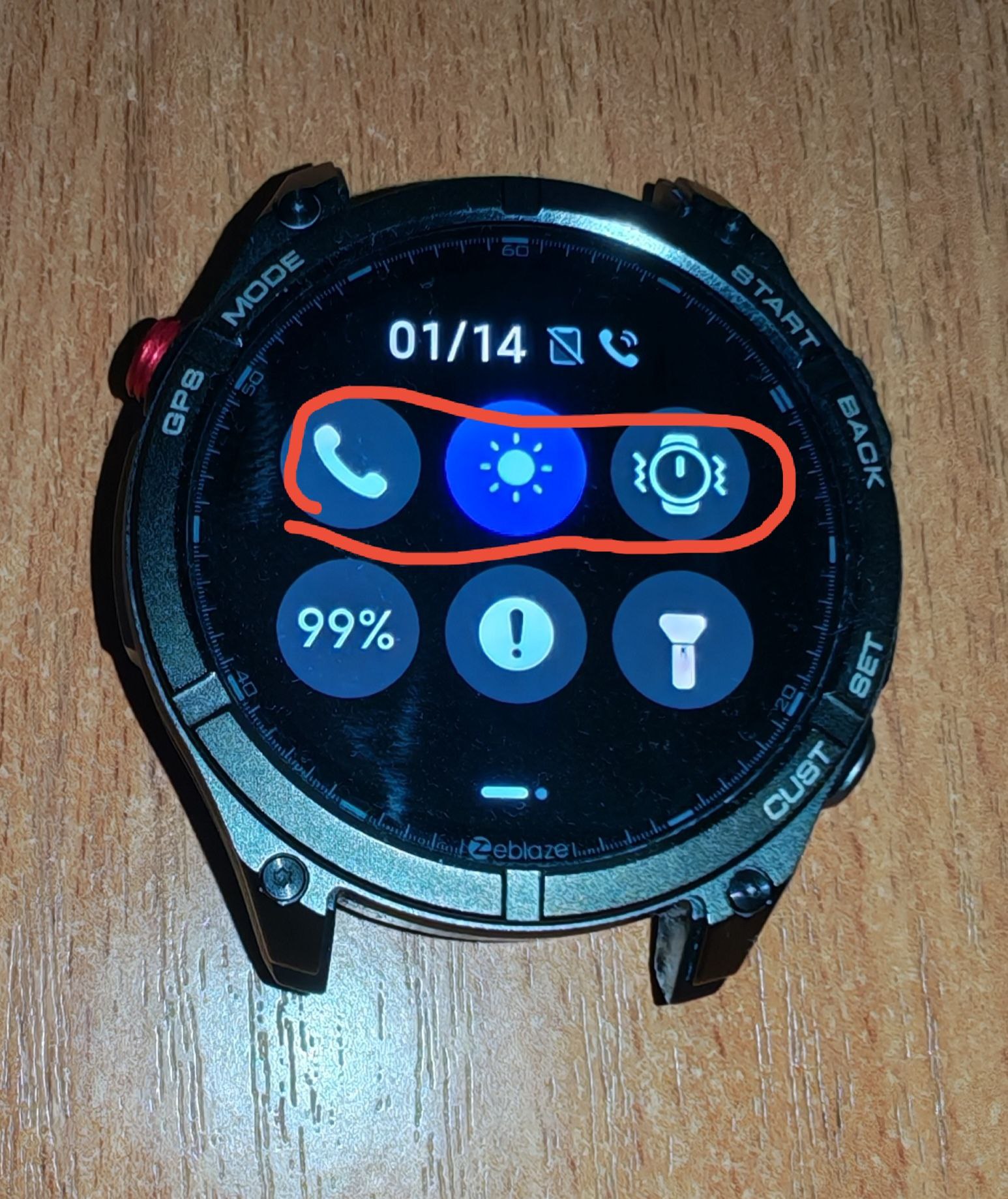 На часах содержится наклейка, которая предупреждает, что часы работают не с обычным приложением Zeblaze, а с приложением GloryFitPro.