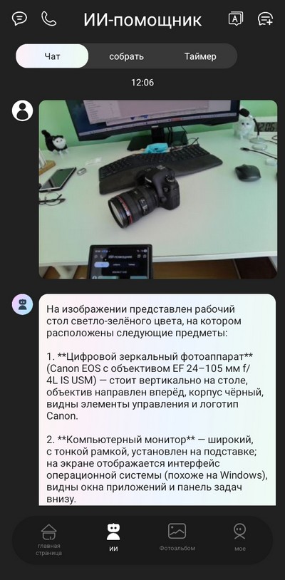 У ИИ-помощника есть интересная функция - распознавать, что именно изображено на снятой очками фотографии. И он там все описывает очень подробно.