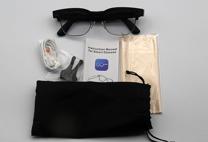 Комплект поставки: очки, чехол, кабель для зарядки, резиновые насадки, руководство пользователя и тряпочка для протирки.