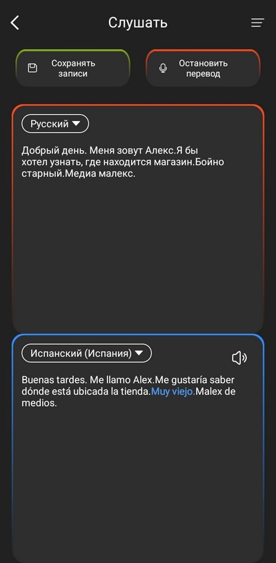 Голосовой помощник в режиме синхронного перевода работает крайне криво: сначала он переводит правильно, но потом зачем-то начинает распознавать и переводить уже сделанный перевод, и дальше начинается каша. А вот режим "Один на один", когда ты держишь смартфон и показываешь перевод собеседнику, работает вполне нормально. И там хорошо придумано показывать текст вверх ногами, чтобы его собеседник нормально видел.