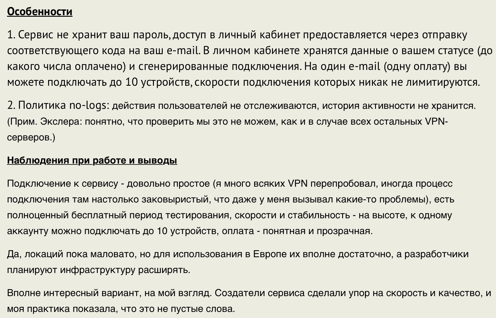 2. Политика no-logs: действия пользователей не отслеживаются, история активности не хранится. (Прим. Экслера: понятно, что проверить мы это не можем, как и в случае всех остальных VPN-серверов.)