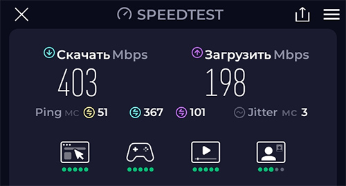 Давайте измерим скорость канала - смартфон подключен по Wi-Fi, у него скорости ниже, чем у ПК.