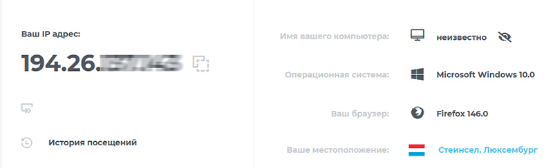 Проверяю мой адрес - Люксембург (я именно этот сервер выбрал).