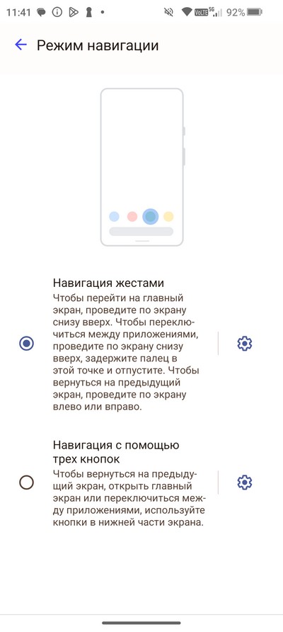 Режим навигации - стандартные три кнопки или андроидные жесты.