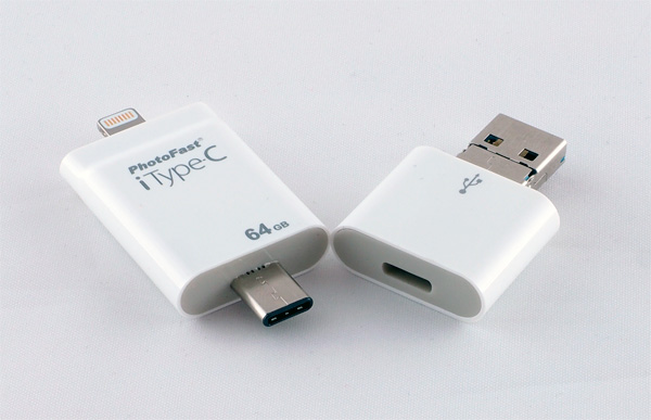 2. PhotoFast iType-C 64 GB - универсальный накопитель на 64 ГБ, поддерживающий и устройства на iOS с разъемом Lighting, новые MacBook Pro с разъемом iType-C и устройства на Android с разъемом Type-C (или microSD через переходник).