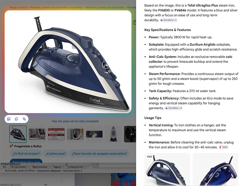 Замечу, что AI Mode - это фактически встроенный в приложение чат-бот. Вы можете там задавать достаточно сложные вопросы, например, "какой смартфон купить в Испании за цену порядка 300-350 евро, если прежде всего важно качество камер", и вы получите подробный ответ вида (скриншот обрезан снизу):