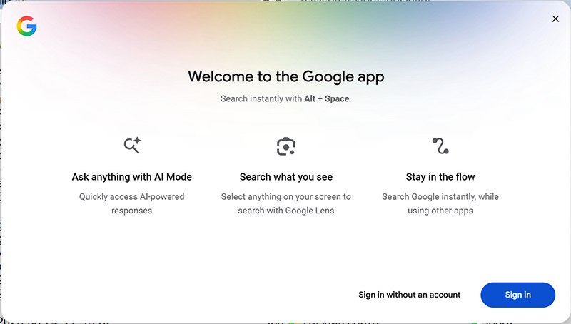 Приложение Google для Windows - новый уровень поиска на базе ИИ