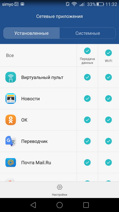 Здесь установлена фирменная оболочка от Huawei - EMUI 3,1. Отдельного окна приложений - нет, все приложения установлены на десктопах.