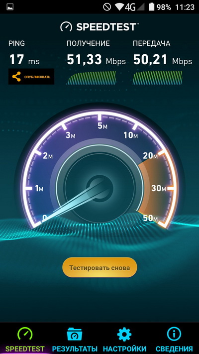 Скорость мобильного Интернета - в пределах ожидаемого.