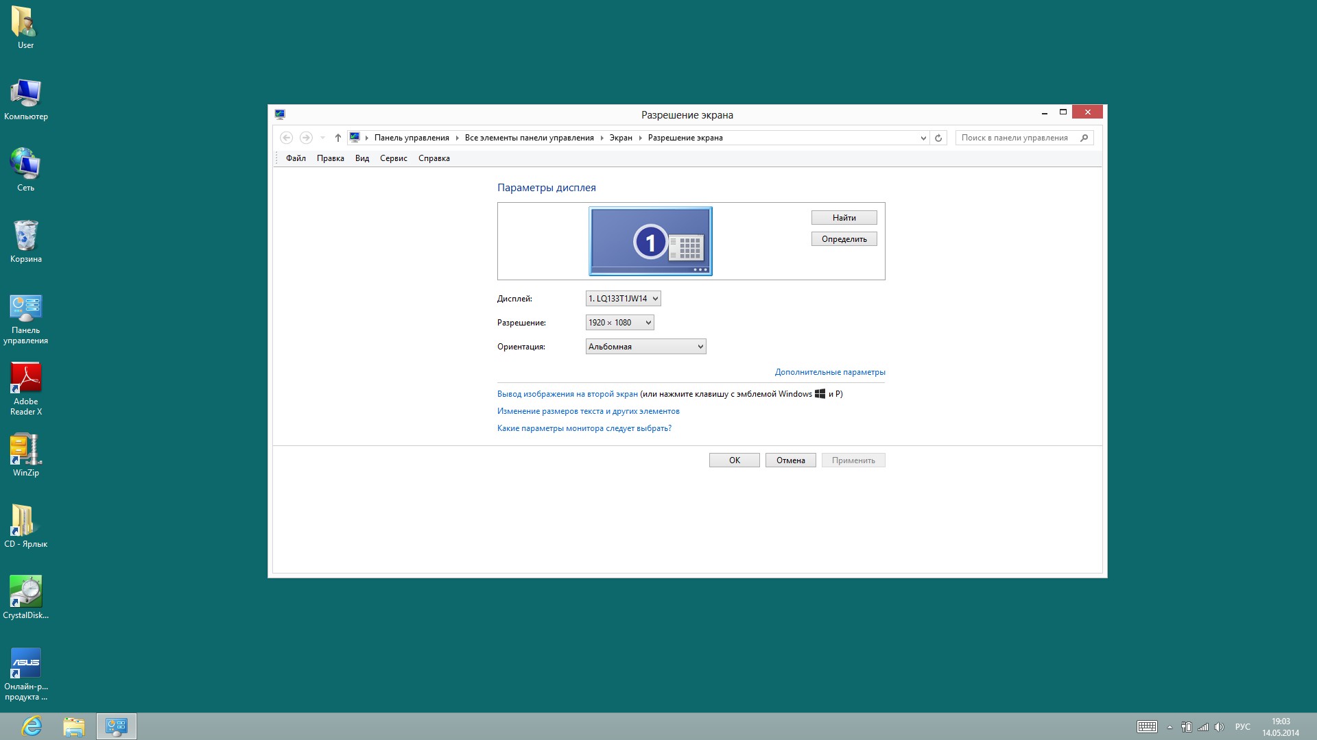 У рабочего стола по умолчанию максимальное разрешение и средний размер шрифтов. Работать в таком режиме не очень получается - слишком мелко.