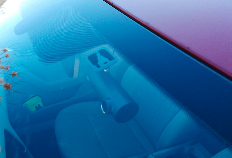 - Чтобы легче было отдирать регистратор надо было воспользоваться комплектной пленкой между стеклом и регистратором. Она, кстати, великолепно держит его и на шелкографии, т.ч. снаружи он становится еще менее заметным (если бы не блестящий ободок объектива, то и совсем не заметным).