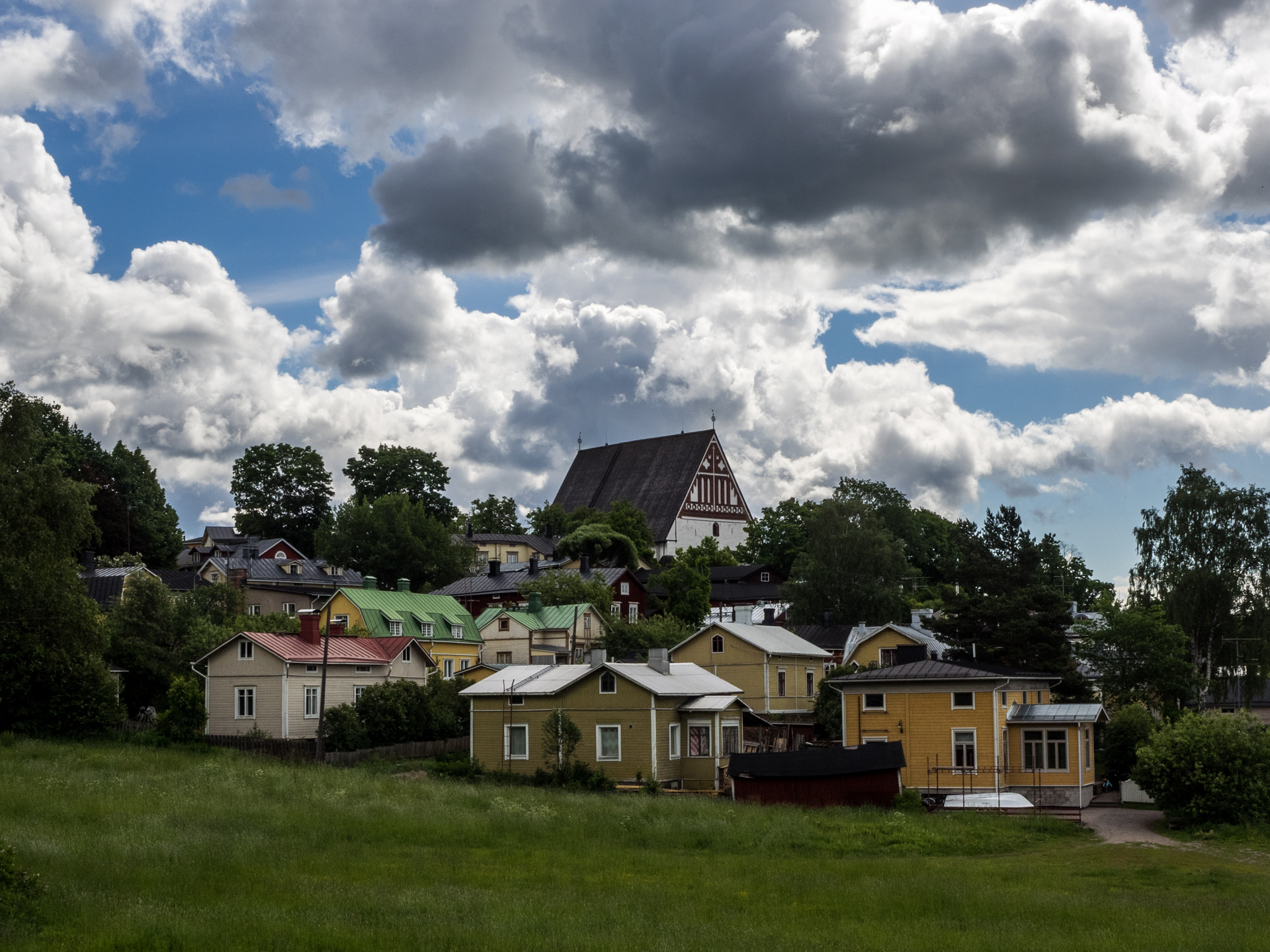 Кстати, Порвоо оказался еще и очень любезным городом. Мы гуляли по нему полдня, погода все время была замечательной: голубое небо и эффектные облачка.