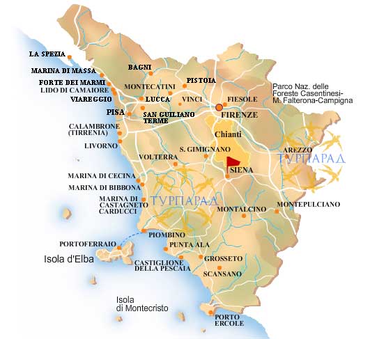 Флоренция находится неподалеку от Сиены - с другой стороны долины Кьянти, - и это соседство много раз аукалось городу военными набегами боевитых флорентийцев. Впрочем, в XIII веке в битве при Монтепеарти Сиена разгромила войска Флоренции, и с тех пор ее более или менее оставили в покое. Оставили-то оставили, но осадок, что называется, остался, так что в Сиене и по сей день не любят Флоренцию - примерно так же, как этот город не любят в Лукке, Пизе, ну и далее со всеми остановками.