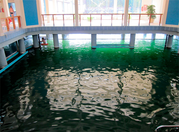 После этого вы можете или начать с крытых купален, или сразу отправляться к открытым купальням озера. Там еще удобно то, что в разных частях озера разная глубина (она указана): если вам неудобно барахтаться на глубине, то можно отправиться в раздел озера, где можно стоять на ногах.