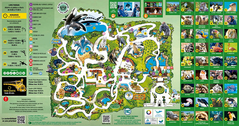 Сейчас площадь парка занимает более 13,5 га, в нем живет порядка 4 тысяч попугаев, 200 пингвинов (для них создан специальный уголок с арктическим холодом и сугробами снега), гориллы, шимпанзы, ягуары, выдры, морские львы, тигры, черепахи, аллигаторы, медузы и другие животные. В течение дня в парке проводятся различные выступления: шоу попугаев, дельфинов и касаток.