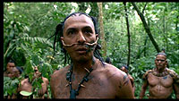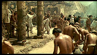 Ну и еще одна претензия, которая часто звучит, касается насилия, жестокости и натурализма "Апокалипсиса". Гибсона упрекают в том, что он, дескать, любуется этими кровавостями и чуть ли не наслаждается ими. Тоже, на мой взгляд, странное замечание. Гибсон старался, во-первых, воссоздать быт тех времен, а во-вторых, показать весь ужас индейцев, попавших на человеческие жертвоприношения в качестве жертв.