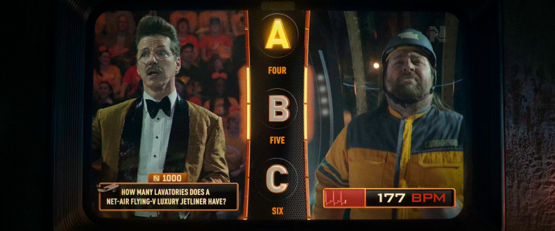 Ну и теперь - боевик, причем не как "Малыш на драйве", а прям такой серьезный-серьезный боевик, антиутопия и полведра социальной сатиры. Тут есть подпольщики, сражающиеся против государственного строя и телетрэша, которым пичкают население, есть люди, разоблачающие устройство телеигр и всевозможные подлянки, которые игрокам подкидывают продюсеры, есть люди, на свою беду, помогающие Бену.