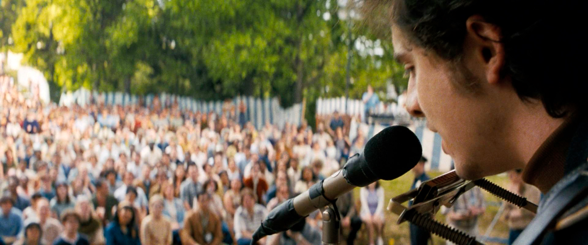 Долго и старательно натренированный акцент с таким же успехом сгодился бы для пародии в каком-нибудь скетч-шоу, неплохое блеяние под Дилана в микрофон могли бы не менее убедительно изобразить какие-нибудь кавер-артисты, а сильных драматических сцен авторы фильма просто-напросто не завезли.