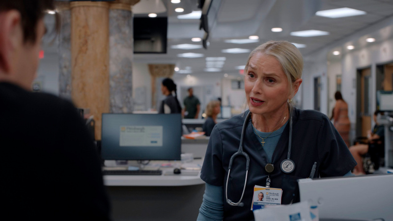 Сериал "Больница Питт" сделан в достаточно необычной манере. Если "Скорая помощь" - это чистый медицинский процедурал, который тянулся годами, то здесь изначально весь первый сезон, состоящий из 15 пятидесятиминутных серий - это четырнадцать часов той самой смены в неотложке: от прихода Майкла в семь часов утра в отделение, и до ухода дневной смены после 14 часов работы в сложных, а некоторые время и в совершенно экстремальных условиях.