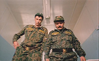 Вообще во многих мелких сценах, из которых состоит этот фильм, напоминая некоторым образом лоскутное одеяло, и сценаристом, и режиссером проявлено чувство меры и, если хотите, чувство такта. Практически нигде они не скатываются ни в откровенную буффонаду, ни в чернуху. Даже когда главные герои попадают к дембелям, и становится понятно, что сейчас они или будут разыгрывать из себя суперменов, или начнется кошмарная "дедовщина", эта сцена довольно неожиданно сделана очень забавно, без уклона и в суперменство, и в "чернуху".