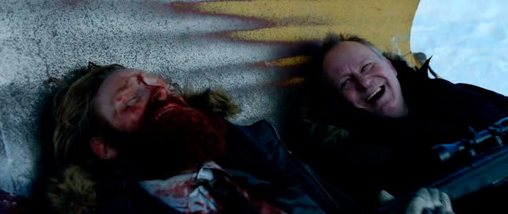 Как, например, момент, когда Нильс избивает некоего Страйка, у которого он хочет узнать имя заказчика убийства сына, потом в изнеможении падает рядом с ним, Страйк его спрашивает: "Что, дядя, устал?" - Нильс в ответ начинает ржать, избитый до полусмерти Страйк ржет вместе с ним, после чего Нильс достает пистолет и простреливает Страйку башку. Суровый скандинавский юмор, господа, суровый юмор.