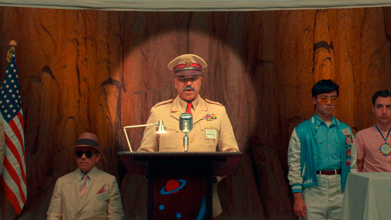 Астероид-сити - это малюсенький городок с 87 жителями, находящийся в пустыне. Полюбоваться в городке особо нечем, кроме разве что ядерными взрывами на горизонте - там расположен полигон Министерства обороны США. Но чем-то себя занять надо, поэтому местные жители предпочитают смотреть на небо и наблюдать за звездами и планетами, тем более что в городе есть своя обсерватория, руководит которой выдающийся ученый доктор Хикенлупер (Тильда Суинтон).