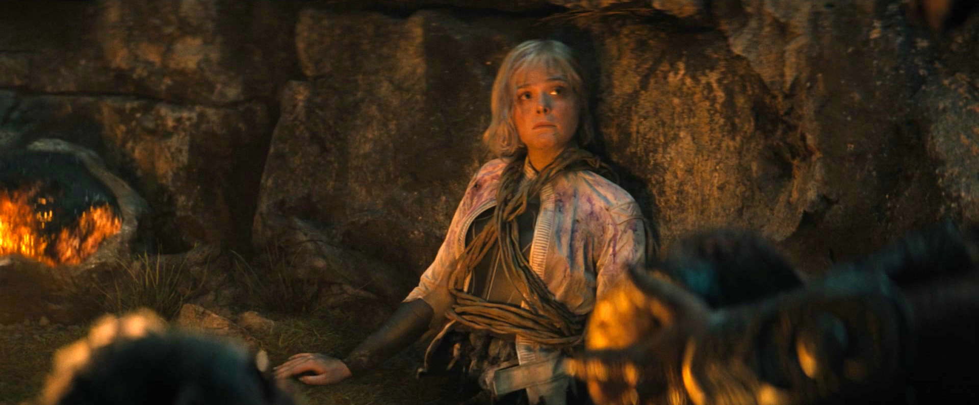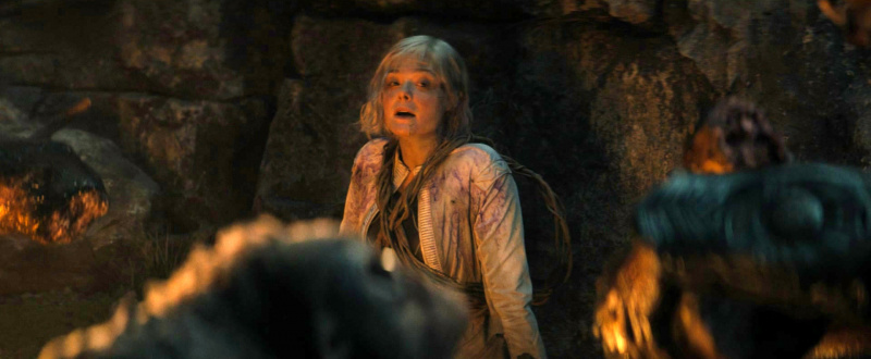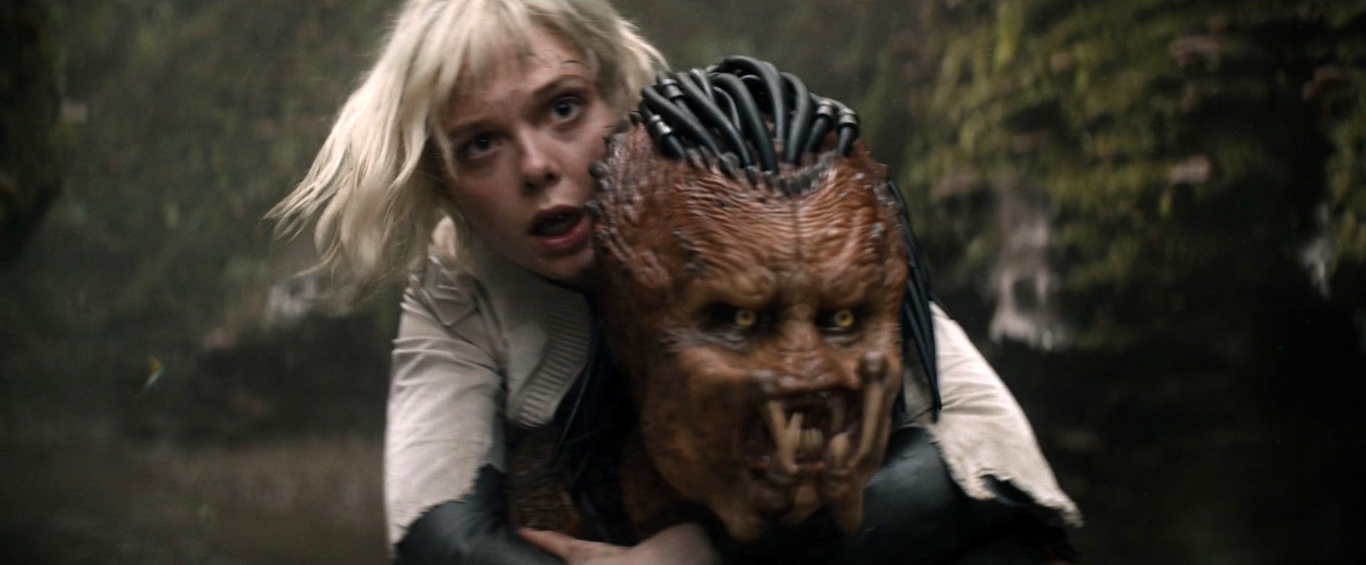 Ну и наши с Бубликом комплименты Димитриусу Шустеру-Коломатанги: для исполнения этой роли ему кроме языковых упражнений требовалась еще и нешуточная физическая подготовка, ведь значительную часть фильма Хищник перемещается с Тиа за спиной, и это так и снимали: актер ходил и даже бегал с привязанной к нему Эль Фаннинг.