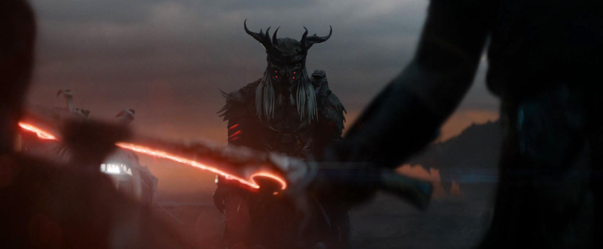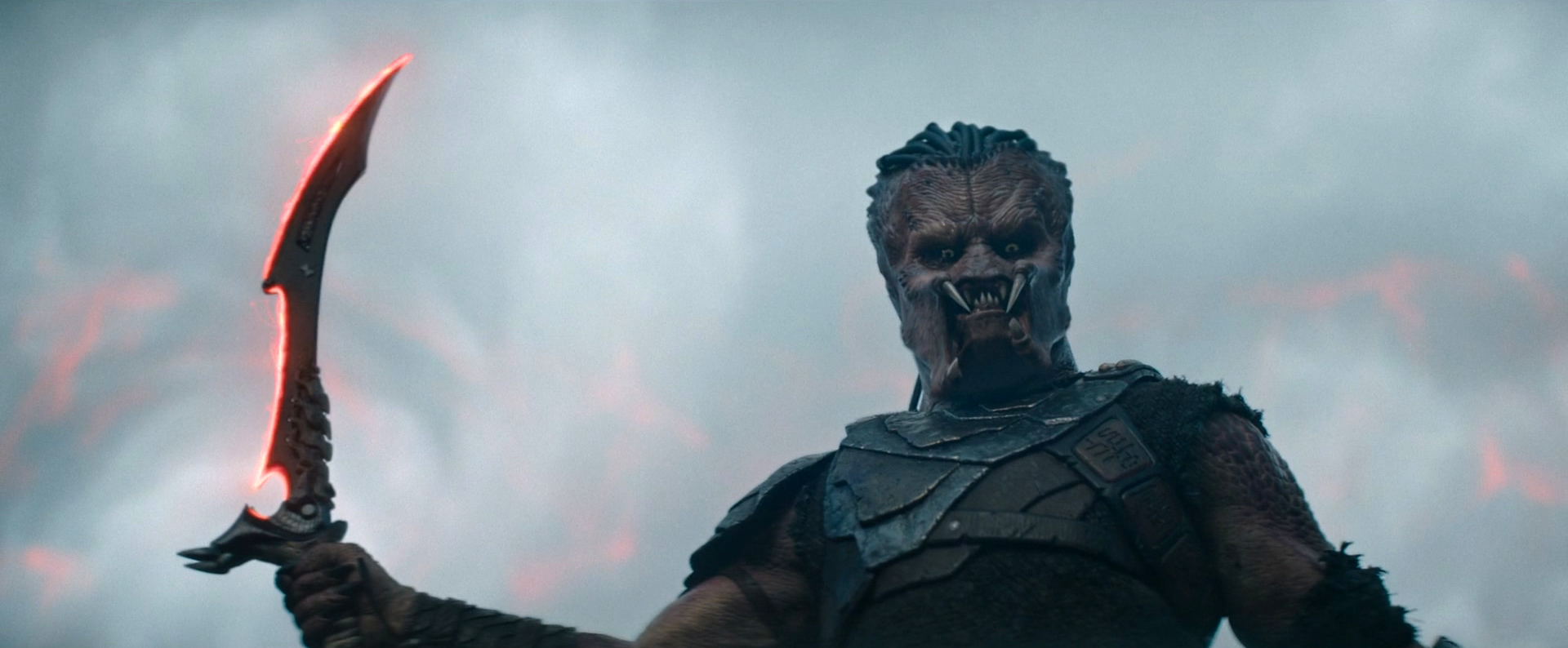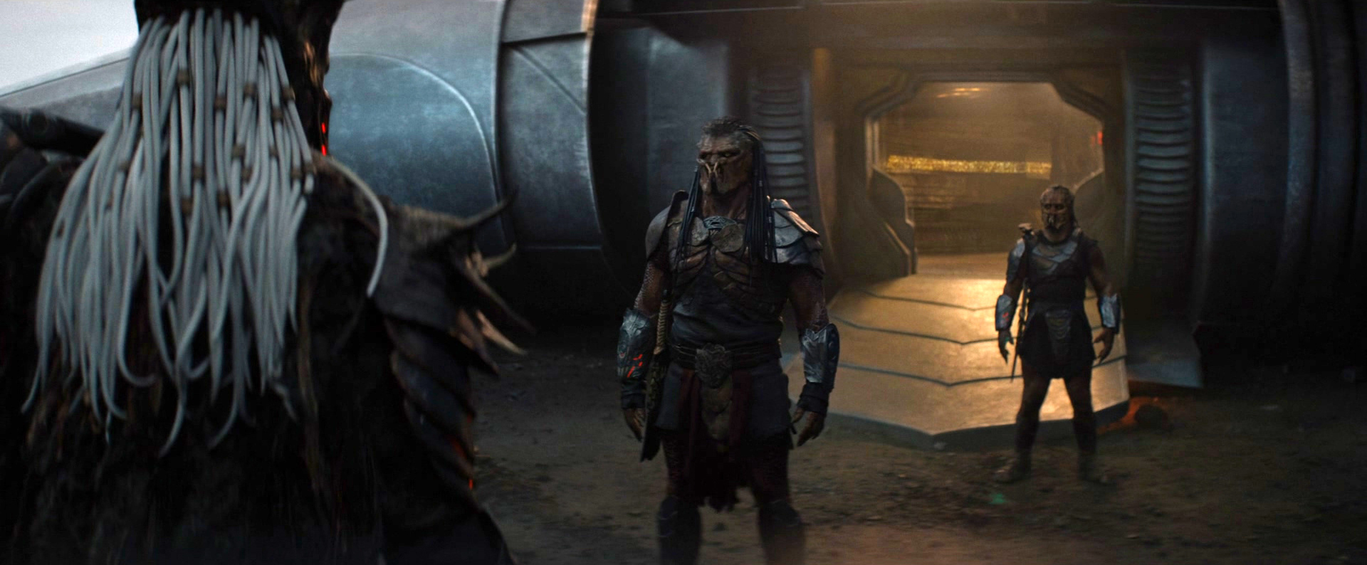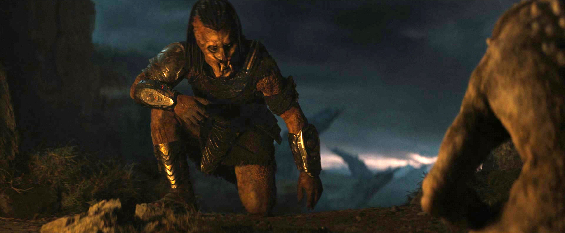 Что тут еще интересно? Ну, кроме впечатляющего фантастического антуража здесь классно сделано то, что Дэк говорит на своем языке, на яутжанском (примасский диалект). Съемочная группа долго думала над тем, каким вообще должен быть этот язык, и в итоге они обратились к Полу Фроммеру, создавшему язык на'ви для "Аватара", и тот к ним привел языковеда-филолога Бриттона Уоткинса, который и разработал язык для клана яутжа.