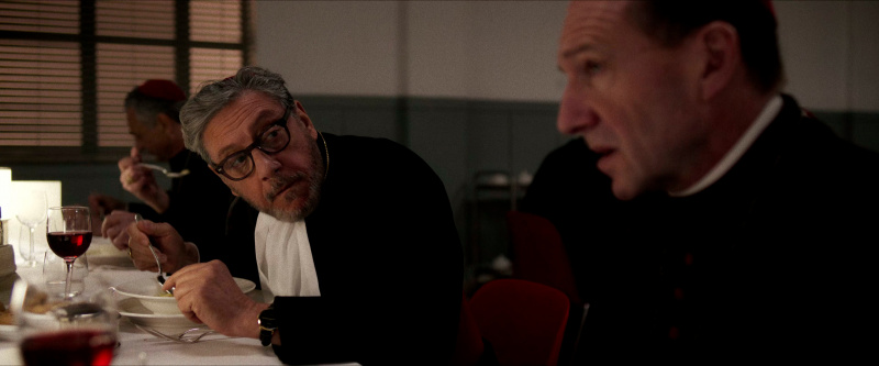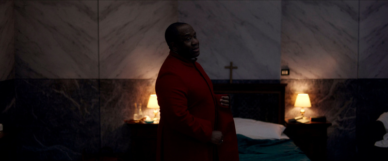 Остальным актерам - прежде всего, Стэнли Туччи, Джону Литгоу, Лусиану Мсамати и Серджо Кастеллитто - здесь толком развернуться не удалось. Как я понял из отзывов, в книге этим кардиналам, их историям и характерам уделено значительно больше внимания, но в фильме постановщик решил по полной сконцентрироваться на фигуре Тома Лоуренса, что, в общем-то, вполне объяснимо. Но все-таки мне показалось, что можно было бы немного более полно раскрыть и других ключевых участников, а то Джону Литгоу тут, по сути, практически нечего играть, а он актер очень сильный, Стэнли Туччи лишь изредка выходил на передний план, а персонаж Серджо Кастеллитто и вовсе выглядел очень примитивным упертым реакционером, что несколько снижало впечатление.
