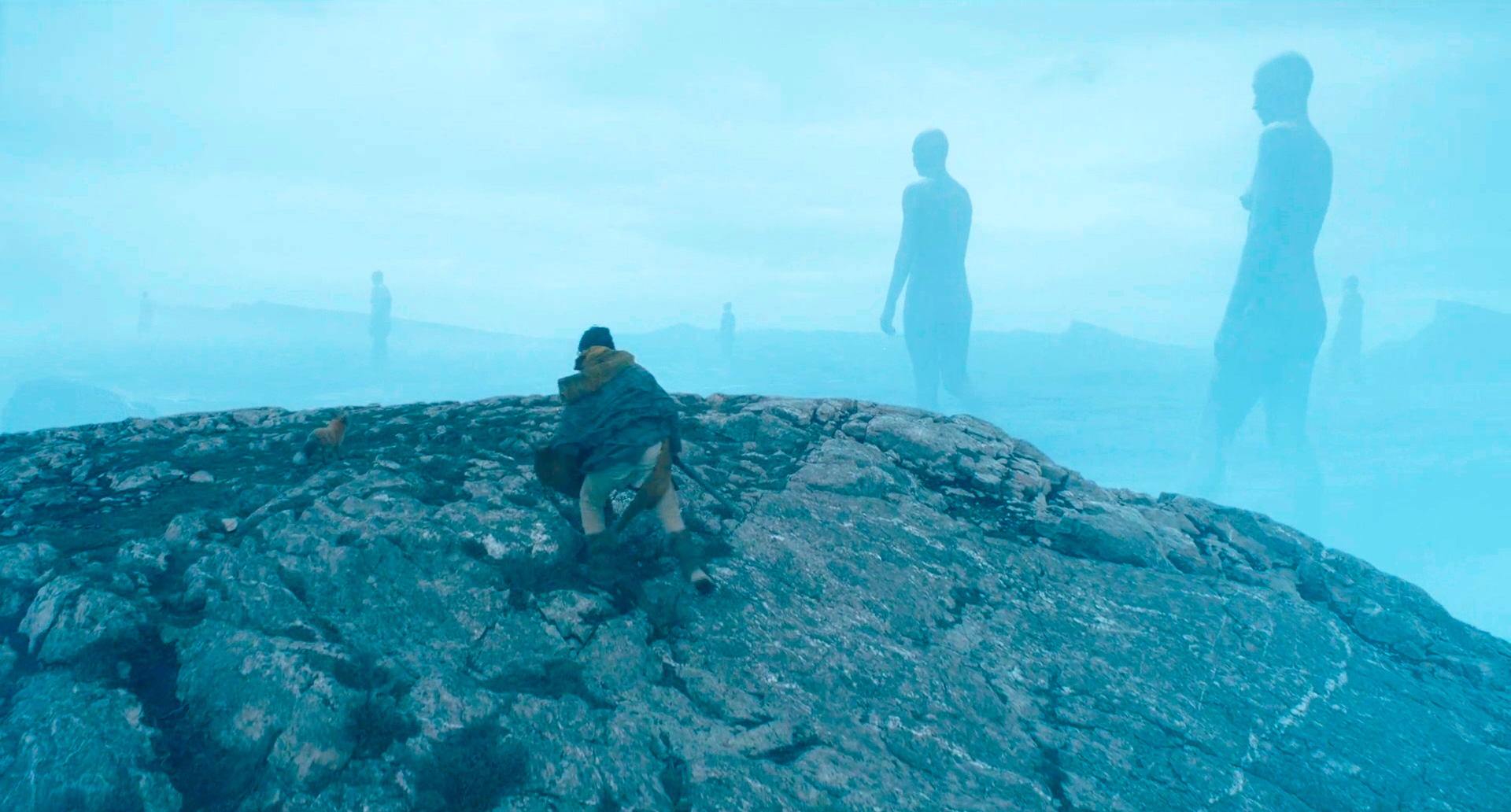 Но подойдем уже к главному - к визуальному воплощению этого фильма. А оно действительно выдающееся. Режиссер воспользовался сюжетом старой поэмы для того, чтобы поразительно здорово визуализировать различные эпизоды этой истории. Костюмы, игра со светом и тенью, визуальные образы, работа художников по костюмам, операторская работа (Эндрю Дроз Палермо), переменчивые пейзажи, переменчивые состояния сознания Гавейна - это прямо-таки здорово сделано, я прям впечатлен.