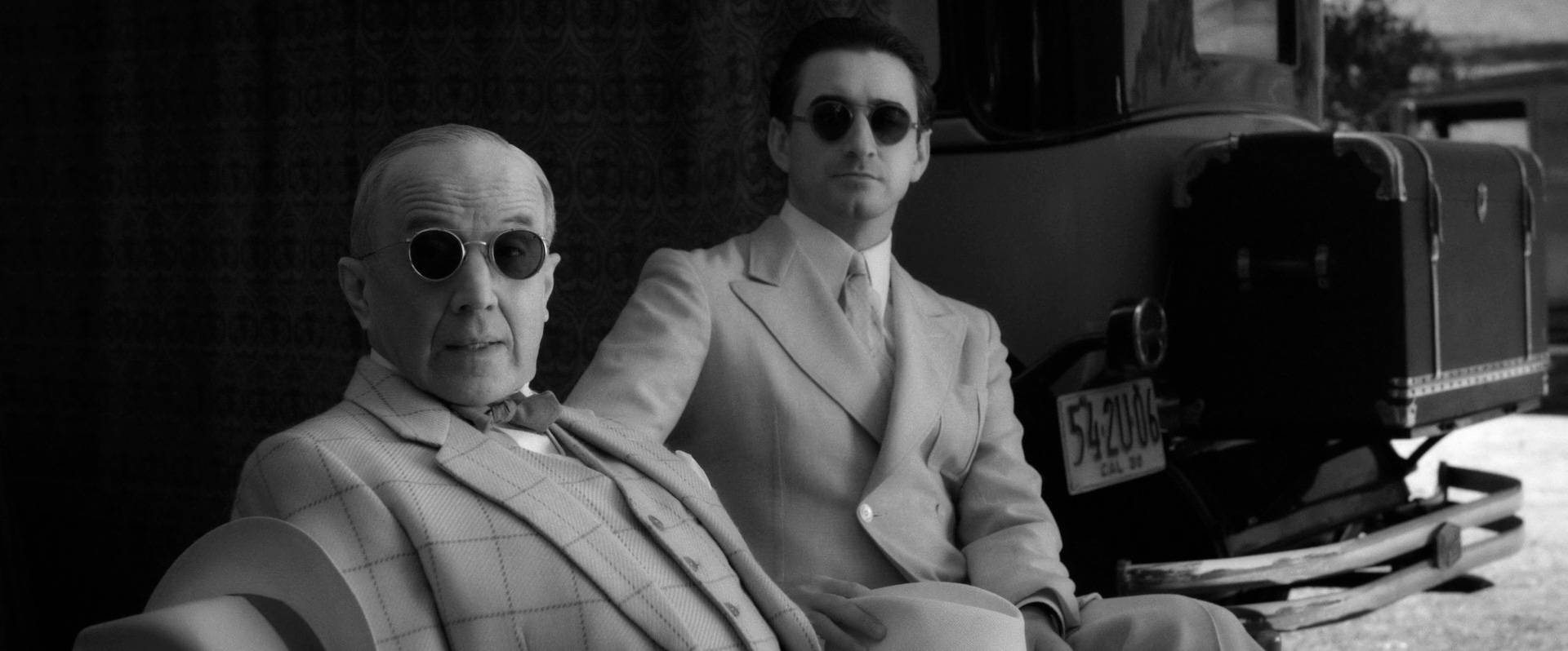 Как это снято и как это сыграно? Фильм о черно-белом американском кино тридцатых и сороковых годов прошлого столетия ожидаемо сделан в черно-белой гамме (правильно, конечно, назвать это оттенками серого, потому что таких оттенков здесь намного более пятидесяти) и четко выстроен в стиле того самого фильма "Гражданин Кейн": картина состоит из флешбэков, отсылок к "Гражданину Кейну" - полно, есть отсылки еще к десятку фильмов тридцатых и сороковых годов.