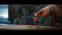 В итоге Моане приходится сбежать от папаши, потом бесконечно мотивировать Мауи хоть что-то сделать, да и еще спасать петуха Хей-Хея от мучительной смерти, которая ему грозит на каждом шагу.