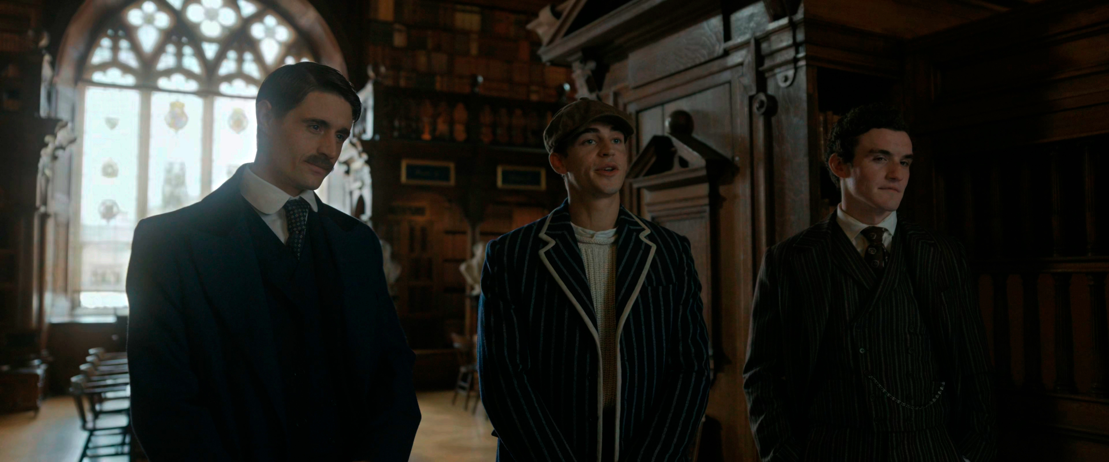 В сериале первые две трети посвящены расследованию всяких мутных делишек, происходящих в Оксфорде под прикрытием главы этого учебного заведения Буцефалуса Ходжа (Колин Ферт), а последняя треть резко переключается на семейные тайны Холмсов, где выясняется много всего неожиданного.