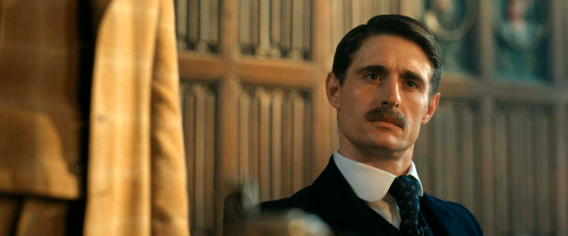 Майкрофта Холмса, старшего брата Шерлока, сыграл Макс Айронс, сын Джереми Айронса. Тоже понравился - четко следовал стилю сотрудника британского МИДа, при этом сыграл достаточно важную роль в происходящем.
