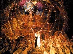 Но лично для меня первая половина фильма все искупила. Потому что это настоящее ШОУ. Потому что это прекрасно снято и смотрится просто великолепно. "Мулен Руж" был сделан именно так, как захотелось Базу Лурманну - без соблюдения каких-либо старинных канонов и традиций, давая волю безудержному полету фантазии и развязывая руки художникам, компьютерщикам, декораторам и балетмейстерам. И получилось! Из их рук вышло совершенно фантасмагорическое зрелище, описать которое у меня не хватит слов, да и не буду я ввязываться в подобное безнадежное предприятие, потому что об этом не надо читать! Это надо просто увидеть!