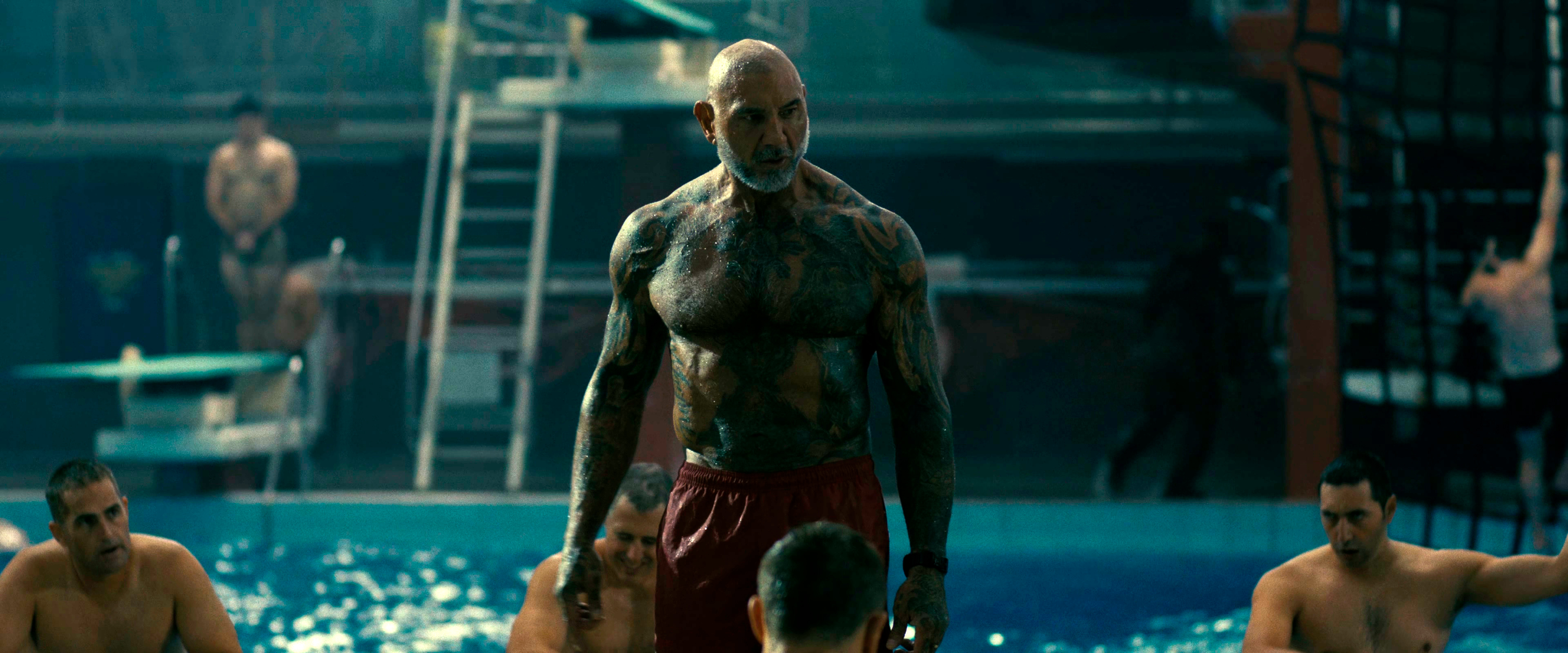 Батиста нам тут не сильно понравился: ему намного больше идет играть тупого, но симпатичного Дракса (мы помним, что этого персонажа мог сыграть Джейсон Момоа, его рассматривали на данную роль), чем рассудительного Джеймса. И мы не будем упоминать, что Батиста заметно похудел, но и постарел, потому что все мы не молодеем.