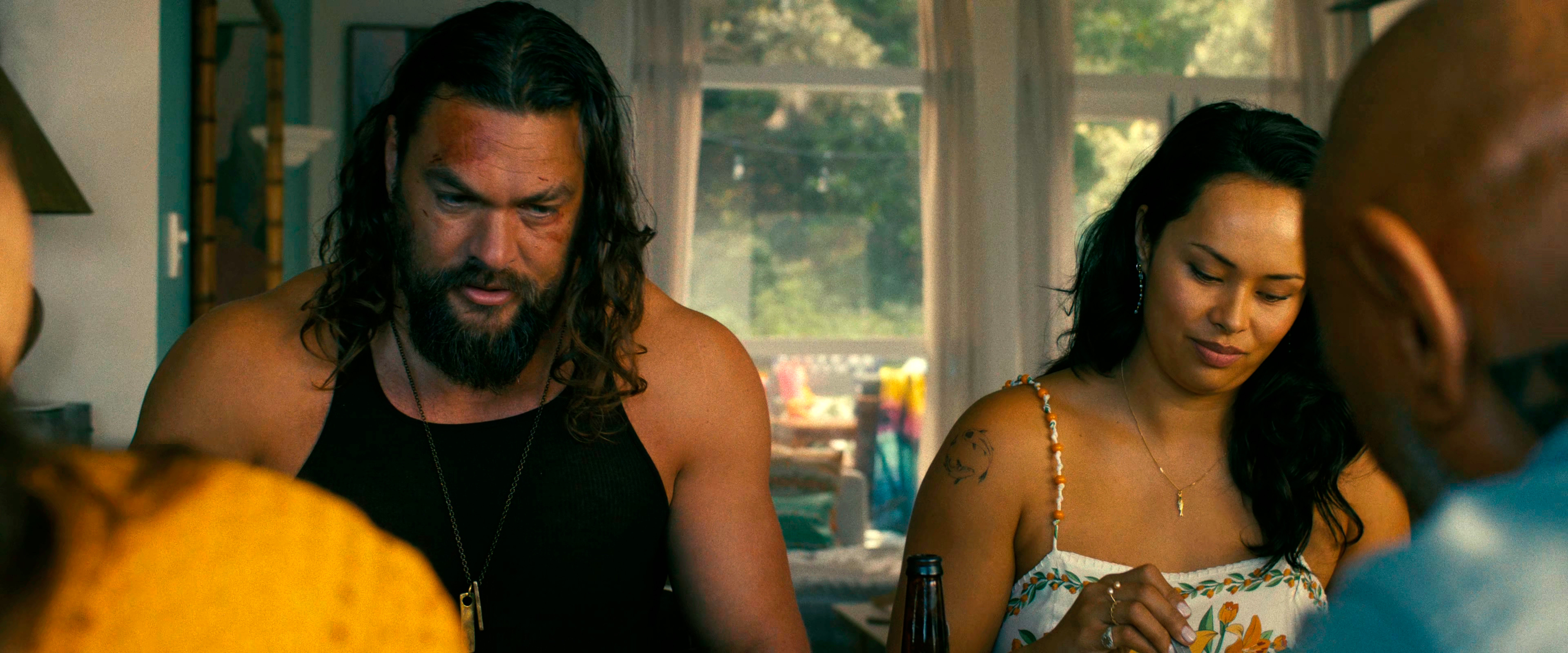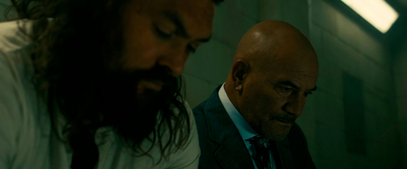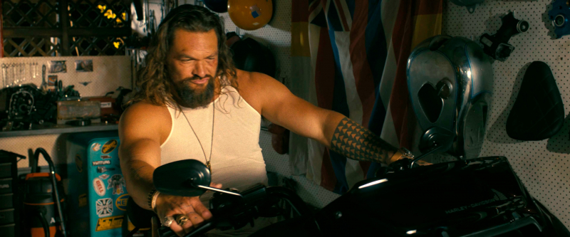 Парочка Момоа с Батистой явно косплеят Риггса и Мюртау из "Смертельного оружия": Джеймс Батисты суров и рассудителен, к тому же явно несколько too old for this shit, а Джонни Момоа - эдакий боевой раздолбай с серьезной душевной травмой, имещий симпатичную чисто человеческую черту: он очень любит пиво и на протяжении всего фильма выпивает банок двенадцать.