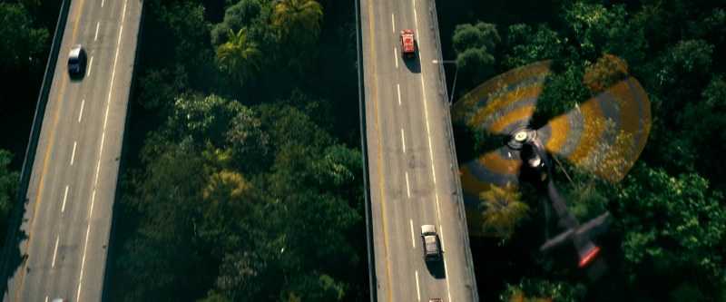 А вот со всякими автомобильными погонями и вертолетом - тут как-то большого бюджета не видно, все смотрится достаточно мультяшно. Нет, какие-то удачные моменты там есть, но временами прям совсем мультик-размультик.